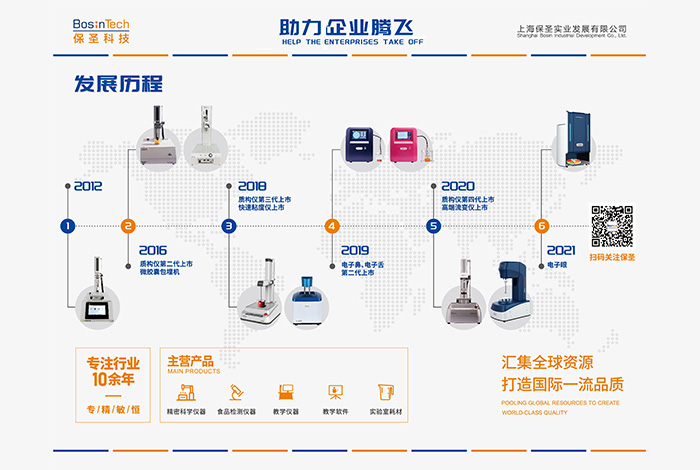 主要產(chǎn)品有:流變儀、質(zhì)構(gòu)儀(物性測試儀)、電子鼻、電子舌、電子眼,快速粘度儀,GC-O, 嗅聞儀,整體感官實(shí)驗(yàn)室,感官分析軟件等。保圣產(chǎn)品堅(jiān)持高品質(zhì),因此贏得了良好的口碑、加上優(yōu)質(zhì)的服務(wù)使得公司產(chǎn)品暢銷國內(nèi)各大高校、研究所、食品、藥品企業(yè)。 并獲得了高度肯定。